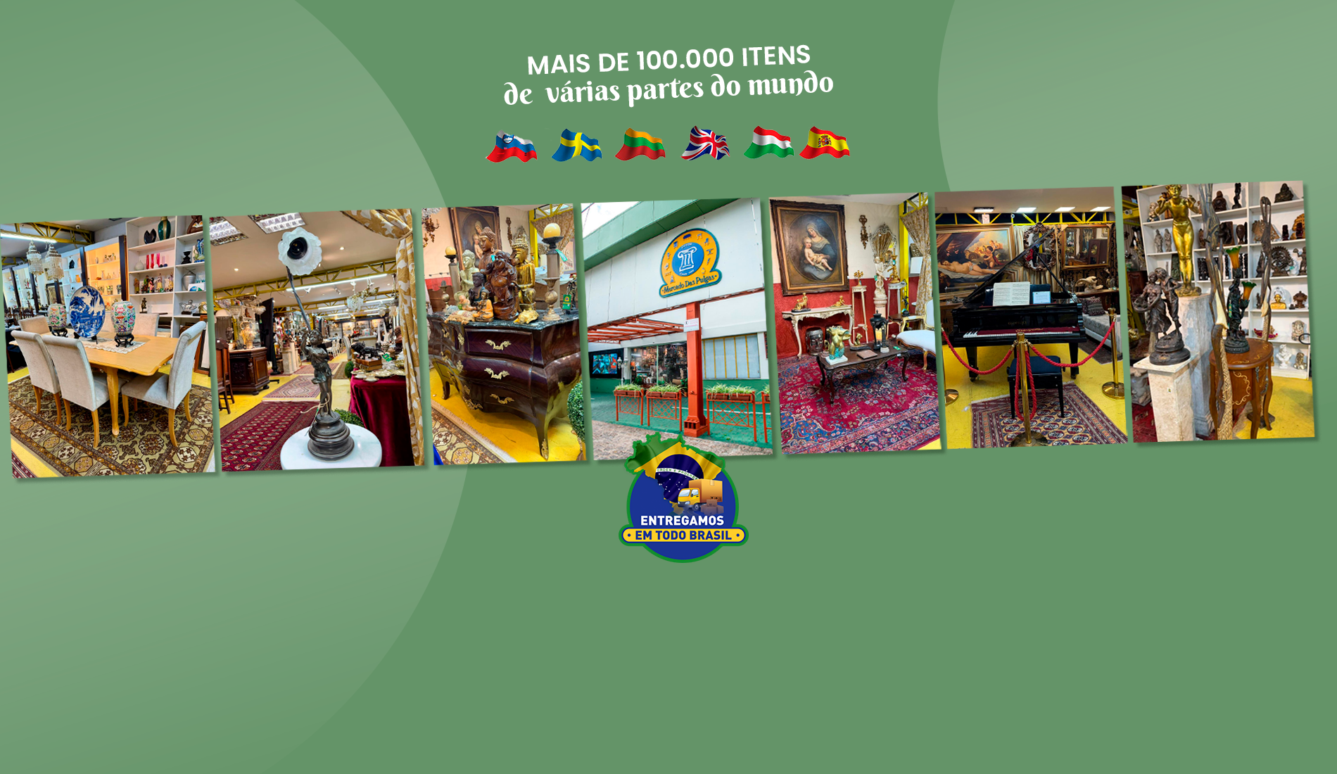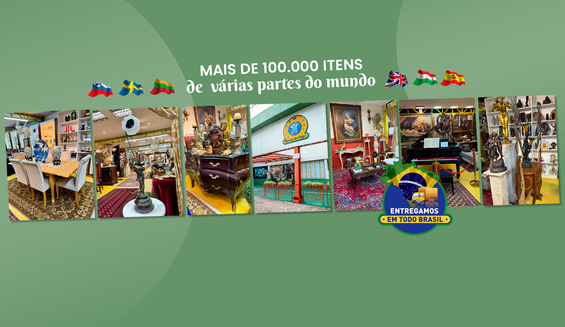 O Mercado das Pulgas de Curitiba possui 3.000m2, com mais de 100mil itens diversos, antiguidades, obras de arte, lustres, cristais, pratarias, bronzes, porcelanas, quadros, móveis e muito mais, um museu comercial.