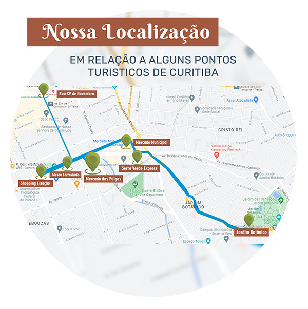 Estamos a apenas 700m do Mercado Municipal de Curitiba, a 1km da Serra Verde Express, responsável pelo tradicional passeio de trem Curitiba – Morretes, e a 1 km do Shopping Estação, um dos principais centros de lazer, gastronomia e convenções da nossa capital.